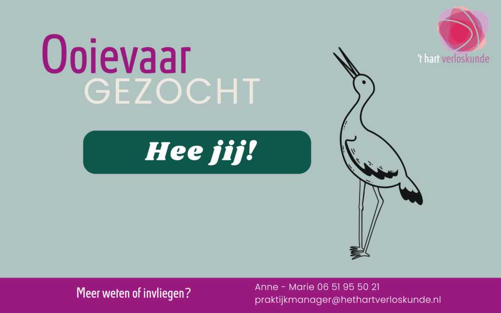 Meer weten of invliegen? Bel of mail Anne – Marie. 06 51 95 50 21 praktijkmanager@hethartverloskunde.nl